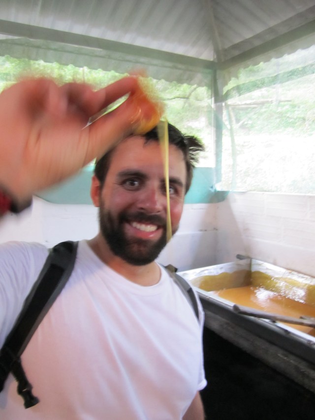 Feeling recharged, we continued marching uphill to one of the Panela factories. Panela is a sweetener made from sugar cane. It basically looks like a loaf of hardened brown sugar and Colombians use it to sweeten their coffee and other items.