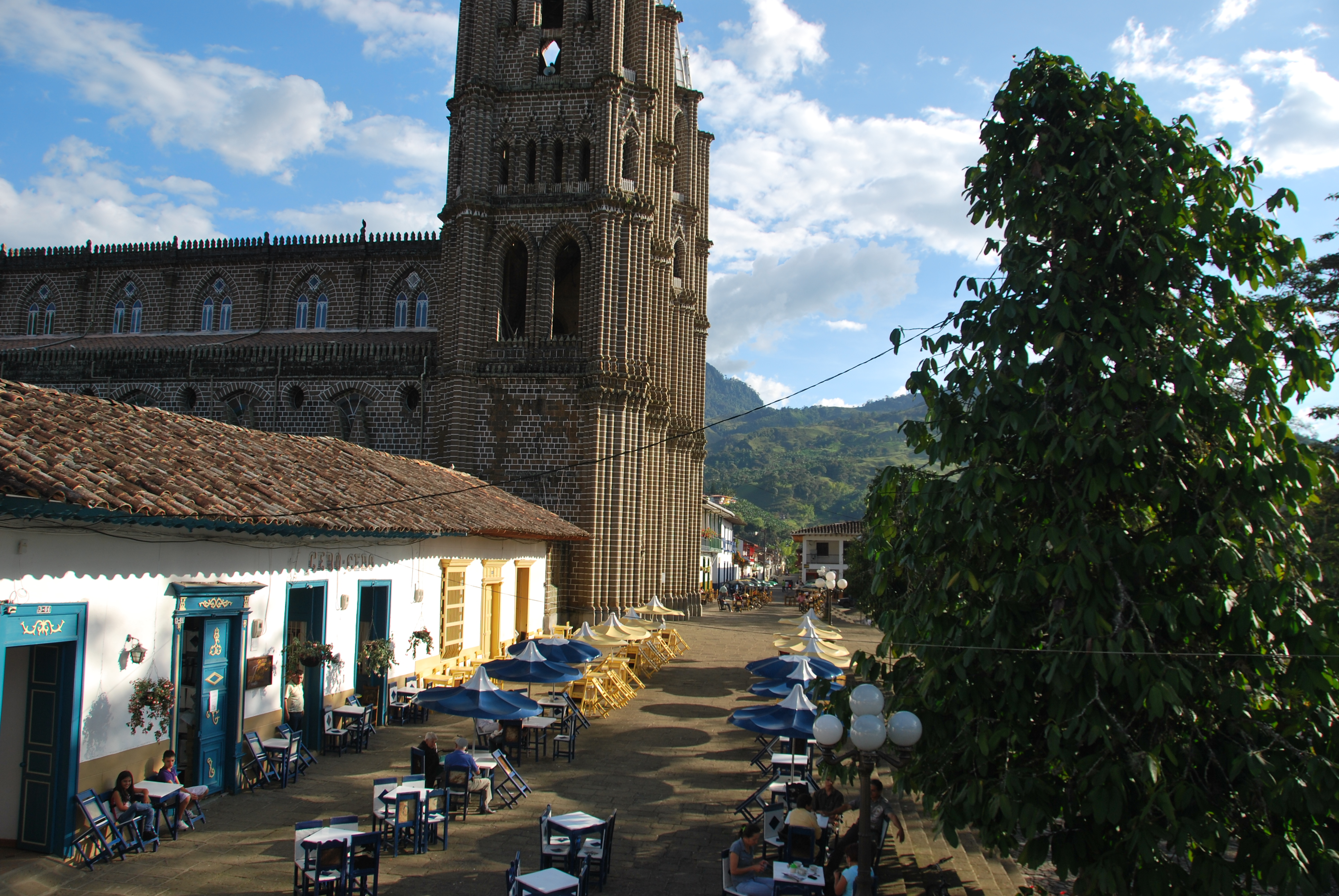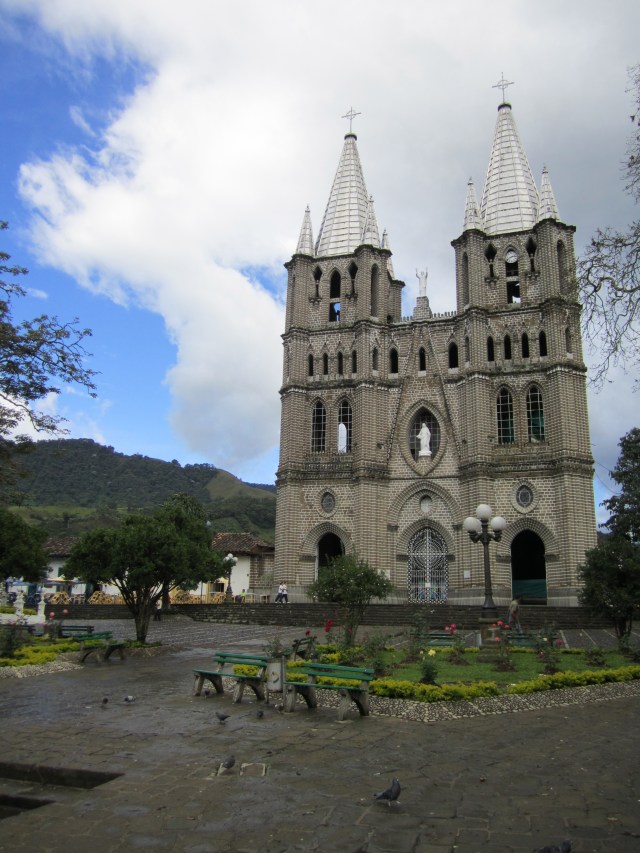 The pueblo of Jardin is centered around a large leafy town square which is surrounded by coffee shops on all sides. This square is so amazing that it has actually been recognized as a Colombian National Monument.  This town is located in the coffee region and many of our days were spent sitting around the square enjoying (several) 30 cent cups of coffee while playing cards and people watching.