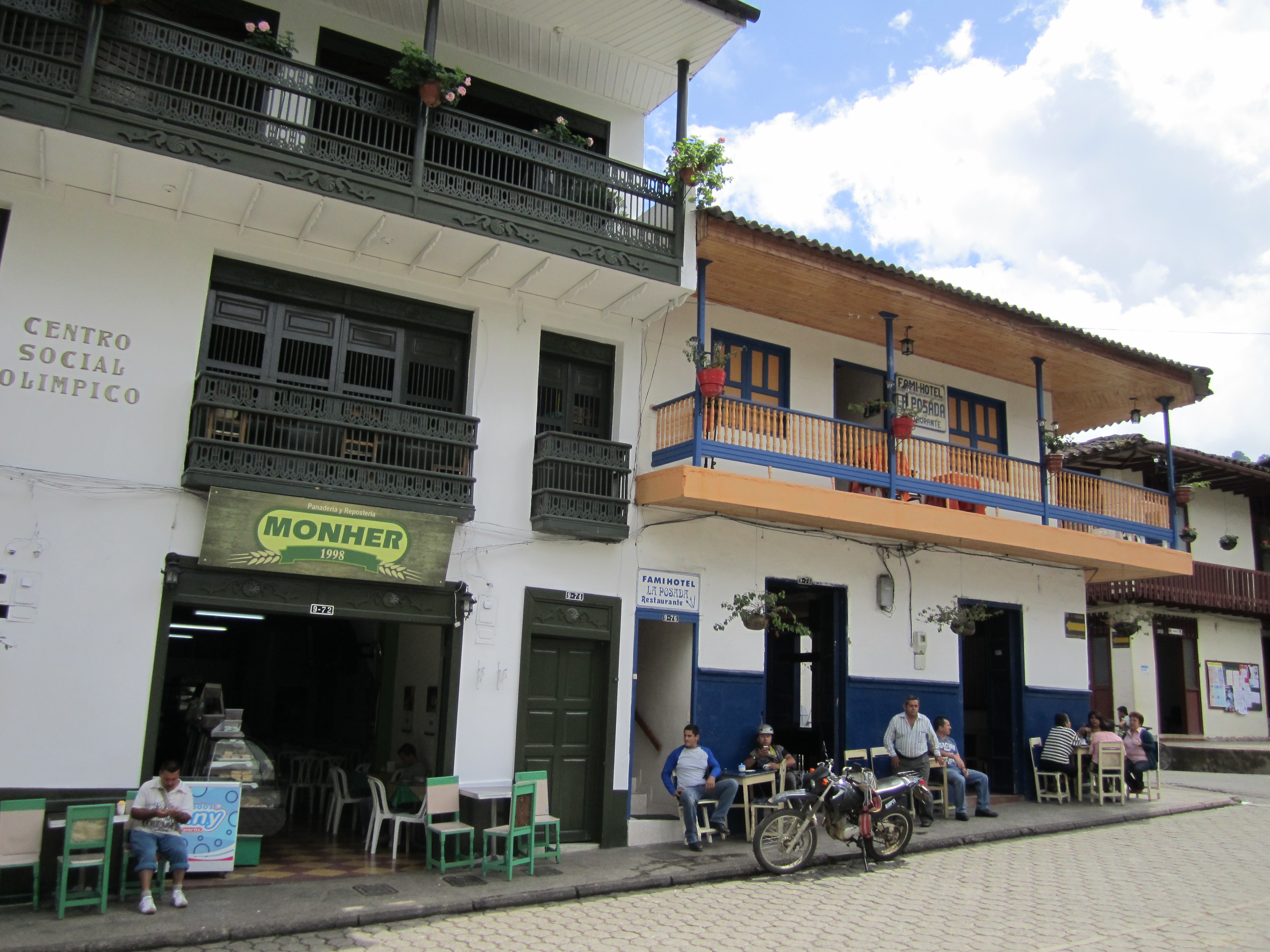 We wandered through the square till we found Fami Hotel, which was near the church and literally right on the square. Our room was nice, and the balcony was an spectacular place to spend time watching the action in the town.  With as much as Colombians love their music, and the many early church bells (5 am!), it was a bit loud, but we always felt a part of the activity.