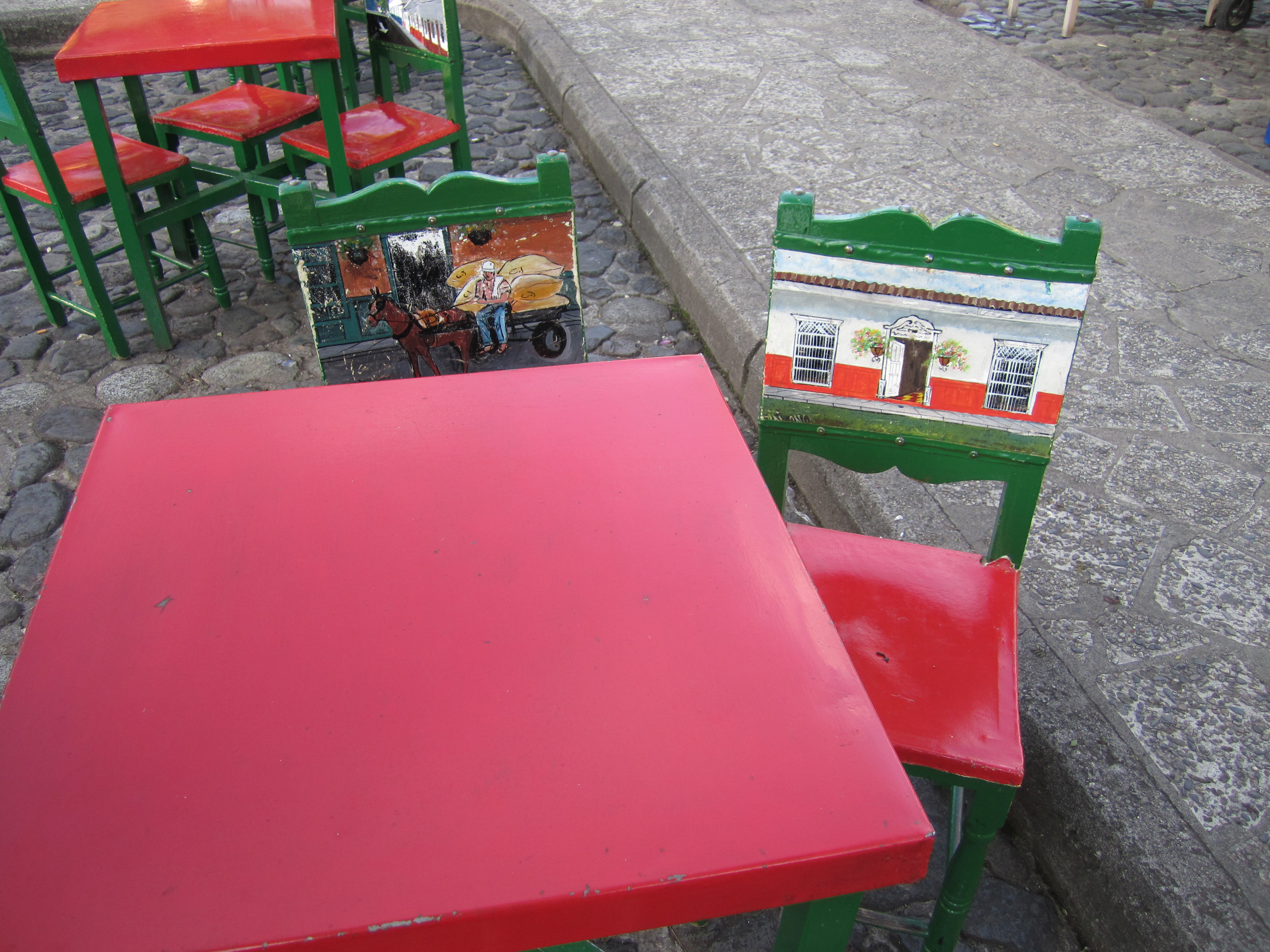 We were greeted by a beautiful square filled with trees and a striking church at one end. Men dressed in ponchos and cowboy hats were enjoying coffee (or something a little stronger) and sitting in the hand painted chairs of the outdoor cafes. Horses were tied up in various places, church bells tolled, coffee was sipped, music was pumping, children were playing, and instantly, we were in love with Jardin.