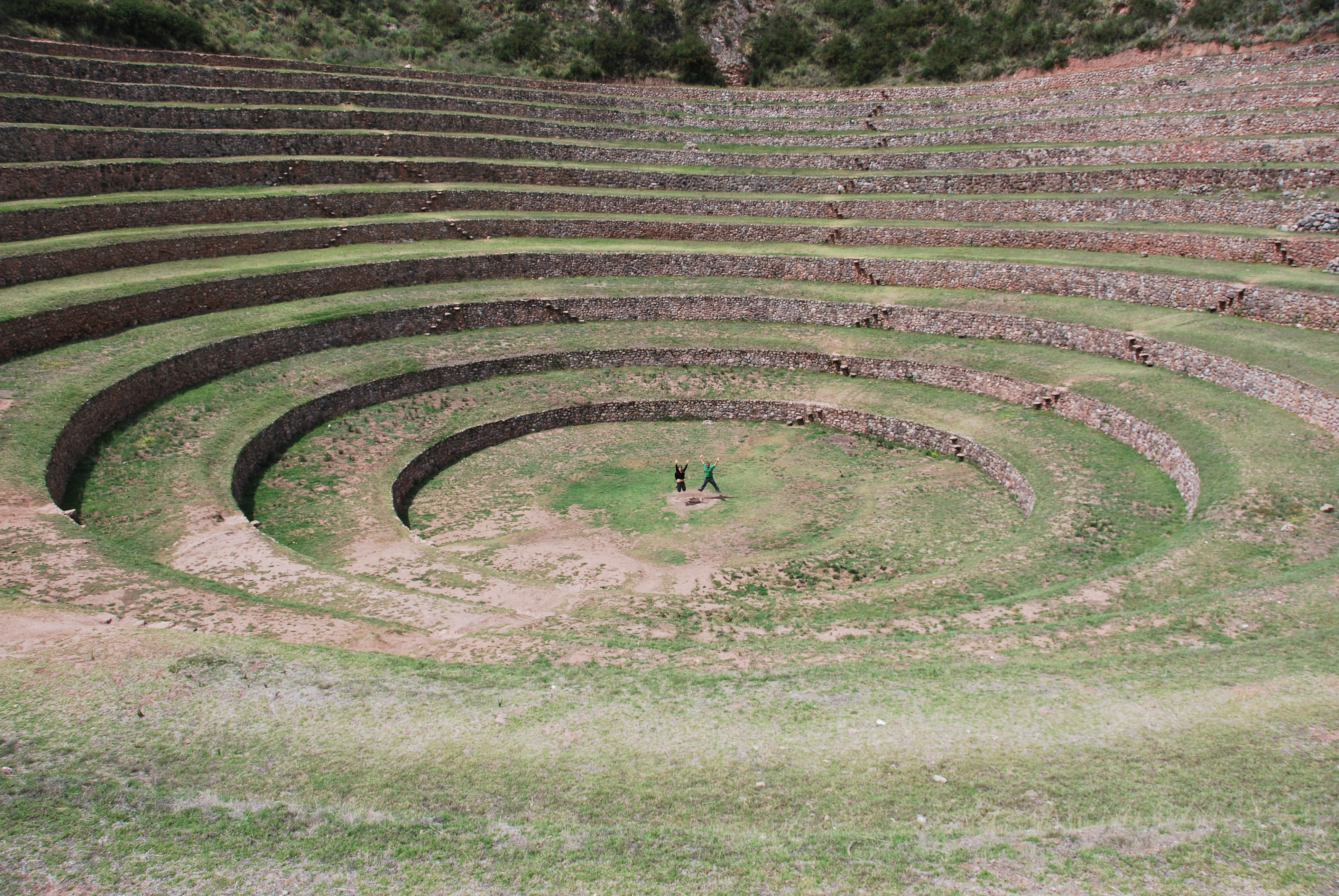 The theory is that the Incans used this terracing as a kind of agricultural laboratory. The terracing creates microclimates within each terrace. It was fun to walk around them and take some fun pictures.