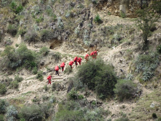After a two-hour bus ride and a quick stop for breakfast, we arrived at Km. 82, the starting point for the hike. We all jumped off the bus, wiped the sleep out of our eyes and readied our gear. This was also our first chance to meet our porters, better known as “The Red Army,” as they loaded their bags with all types of equipment. Wait, did one of the porters just put a full tank of propane on his back?