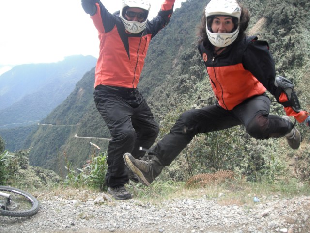 The Death Road covers over 61 kilometers and descends over 11,000 feet. It is full of hairpin turns, shear drop offs of well over a 1,000 feet, and not a single guard rail.  The road is officially closed to auto traffic, as cars are now using the new “safer” road, so at least this removes one element of danger from the ride.